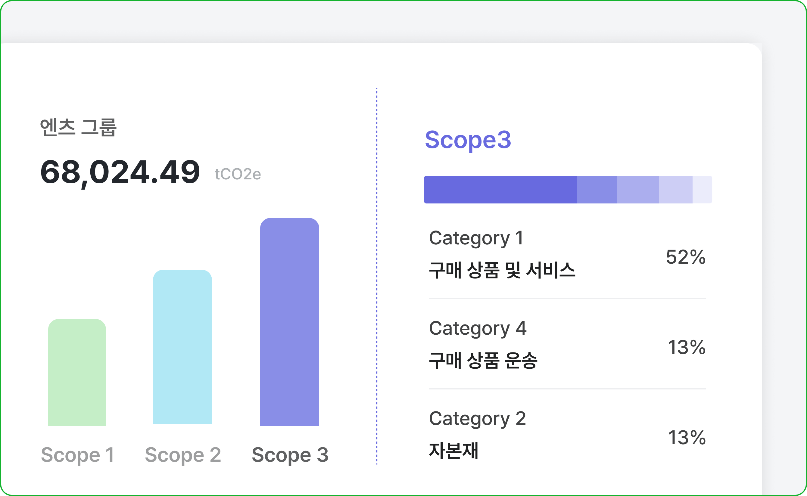 온실가스 인벤토리 구축부터 정량적 산정 및 공시까지 이어지는 구조화된 흐름을 통해 실질적인 대응 기반을 마련하고 있습니다.