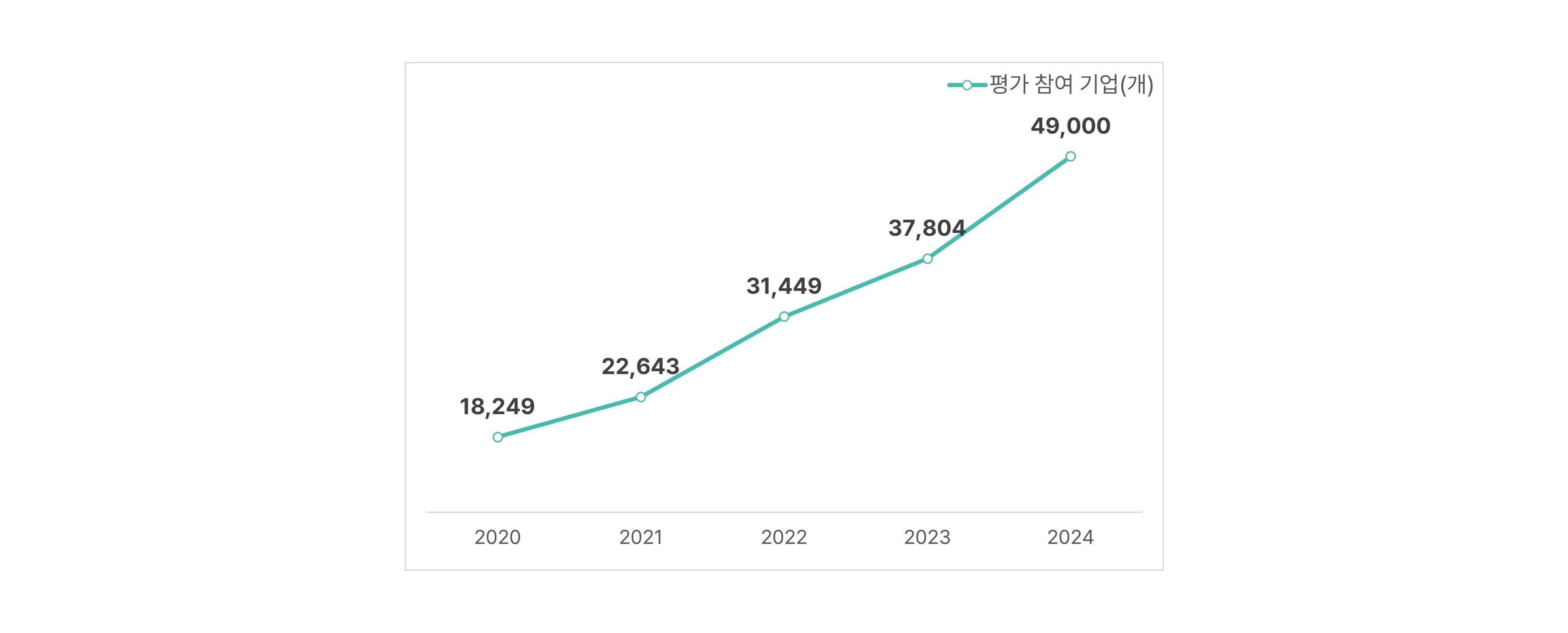현재 전 세계 180개국, 220개 산업군에 걸쳐 4.9만개 이상의 기업이 에코바디스 평가를 통해 ESG 성과를 진단받고 있으며, 약 1,400개 글로벌 바이어가 협력사 선정 및 공급망 관리에 이 평가 결과를 활용하고 있습니다.
