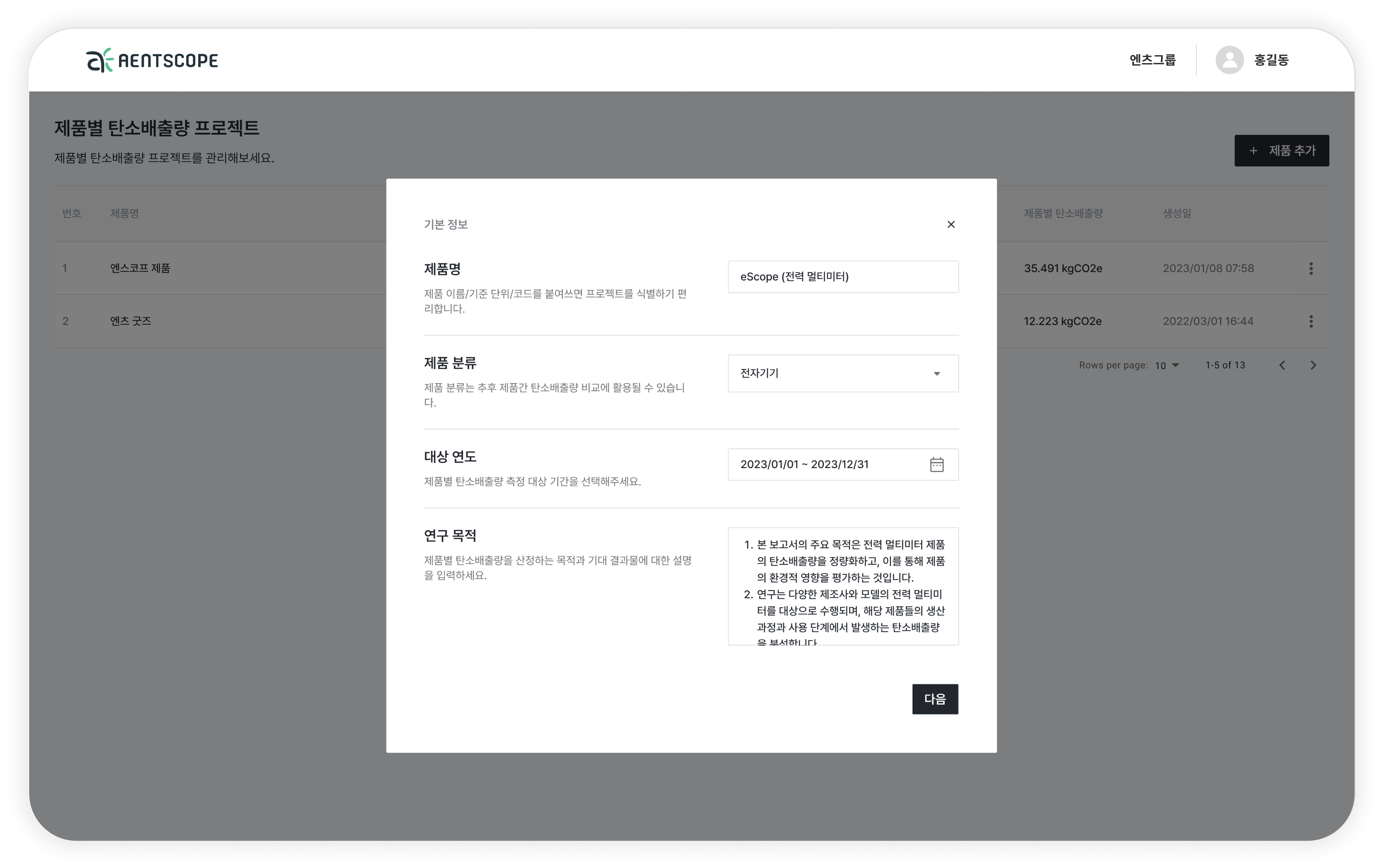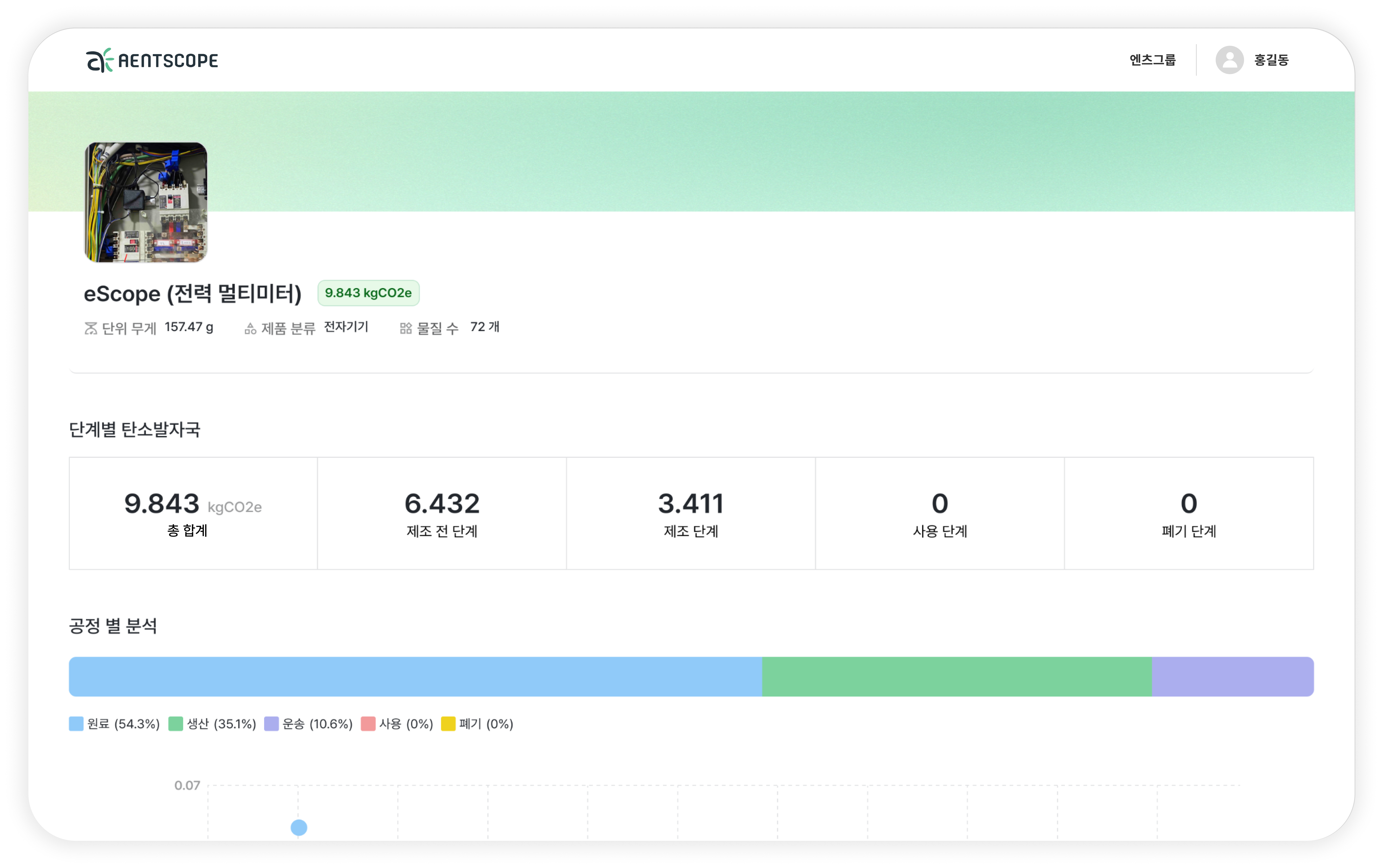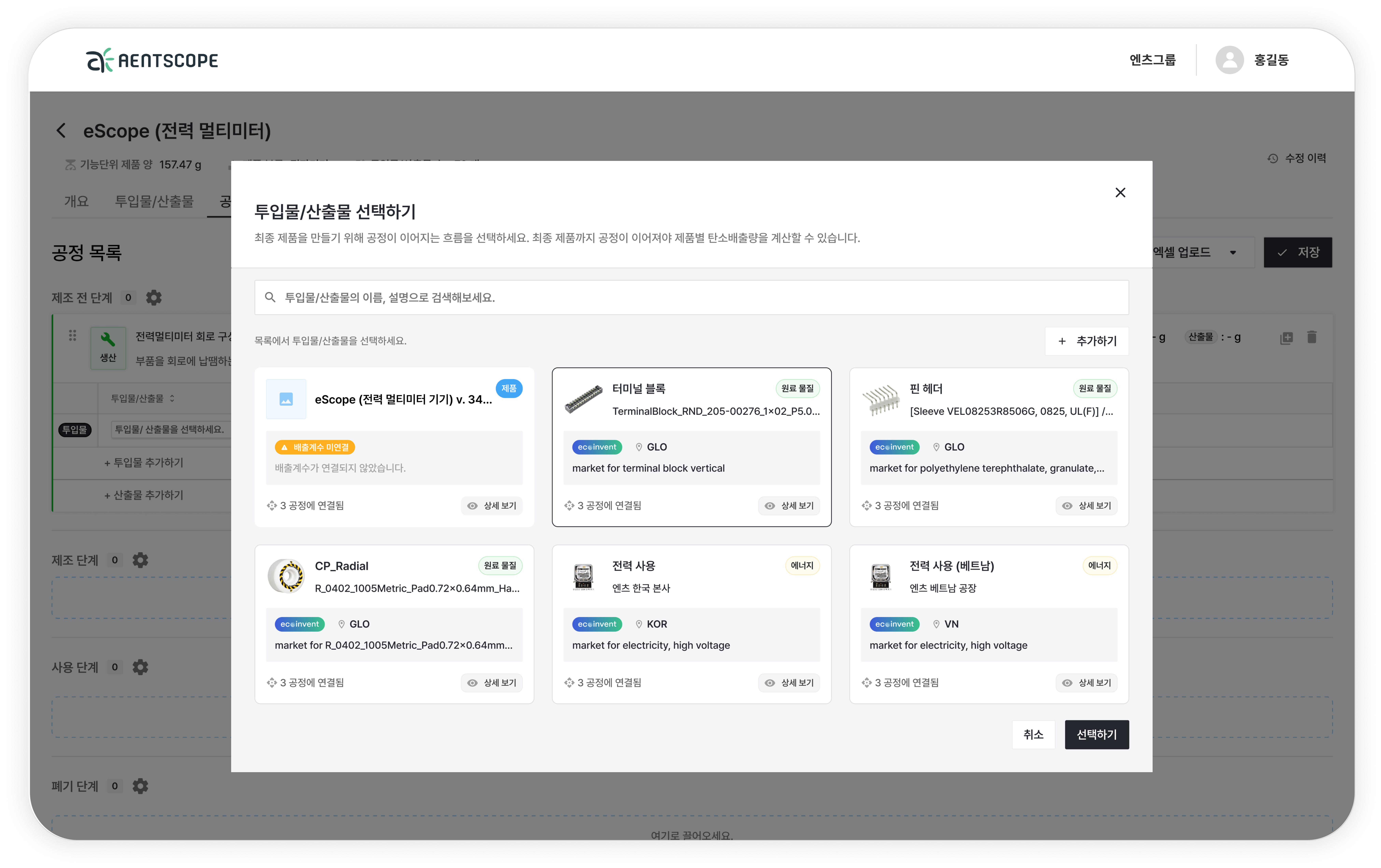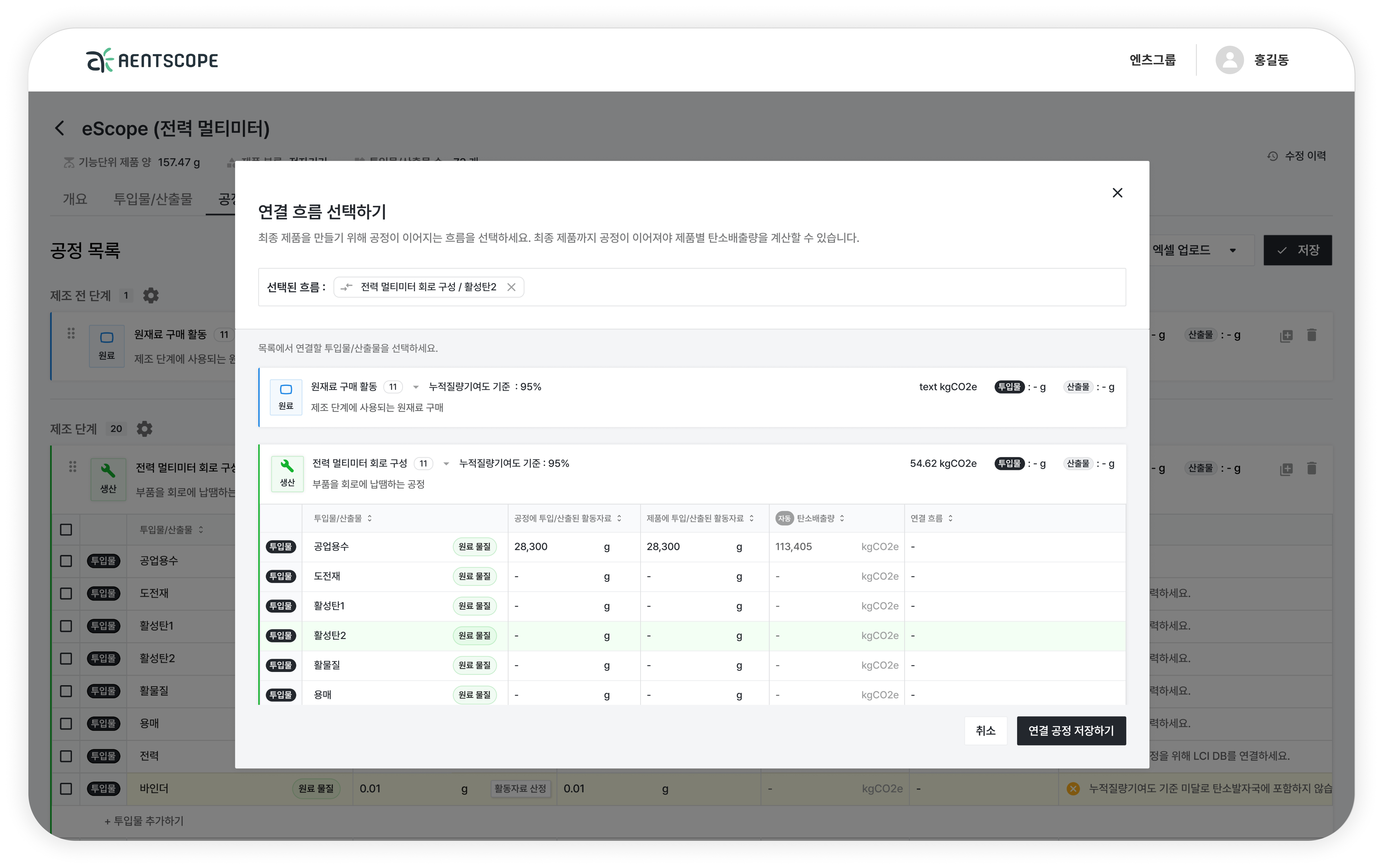 엔스코프를 활용한 제품 전과정 탄소배출량 산정 미리보기