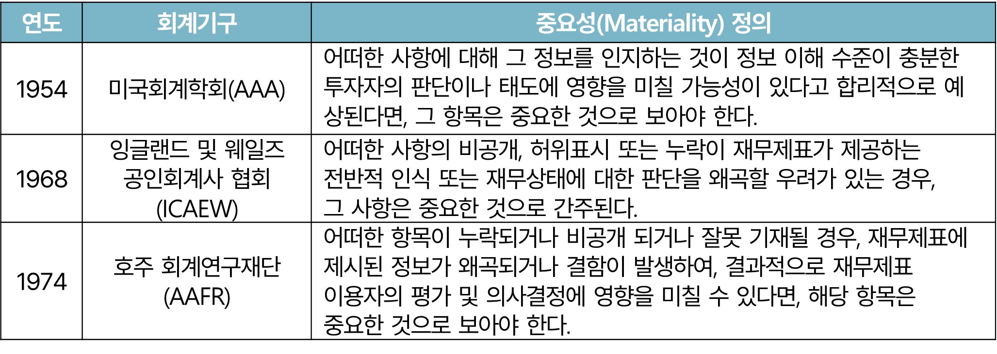 출처: Source: H. Gin Chong, ‘A Review on the Evolution of the Definitions of Materiality,’ International Journal of Economics and Accounting 6, no. 1 (2015).
