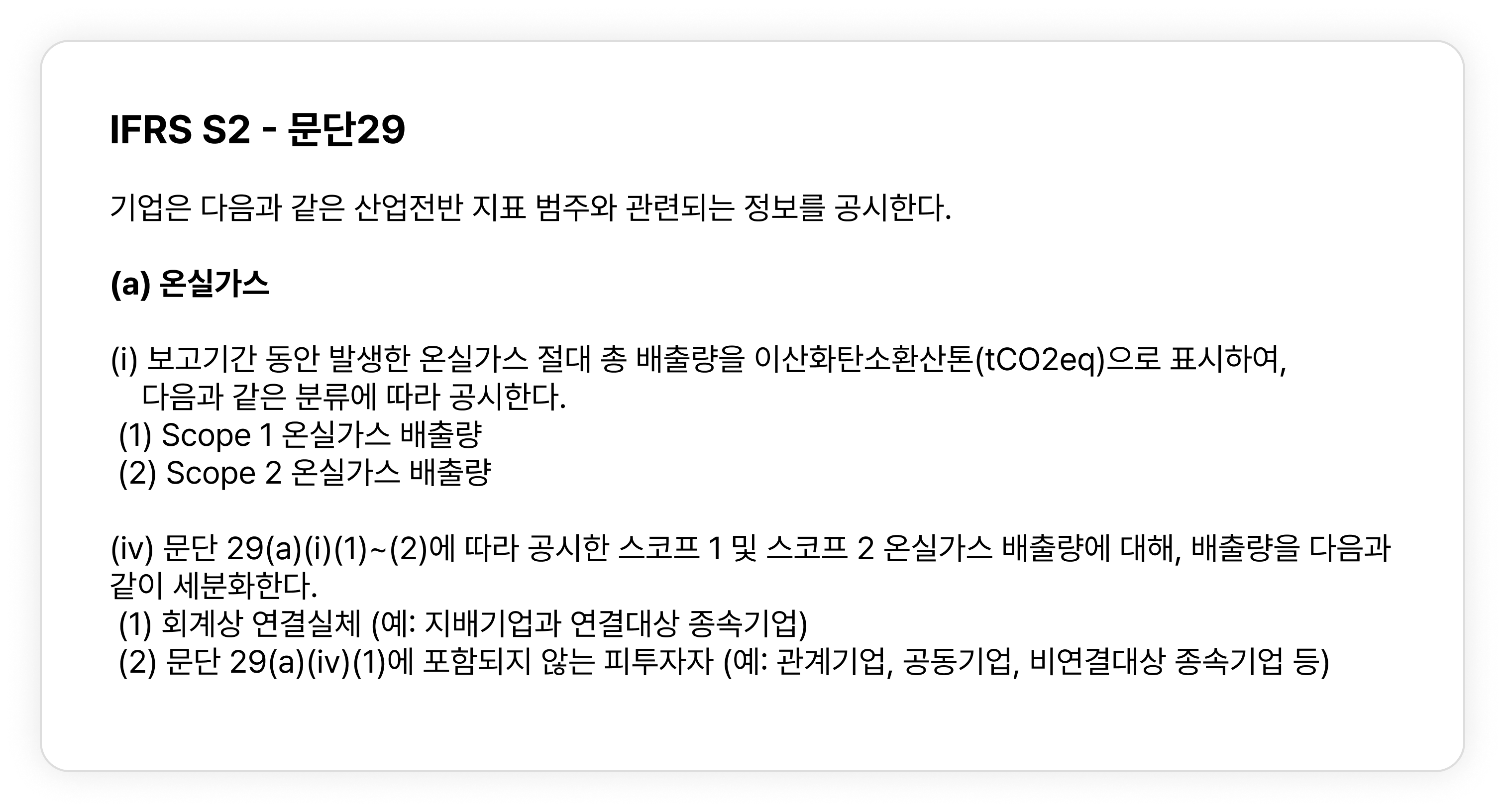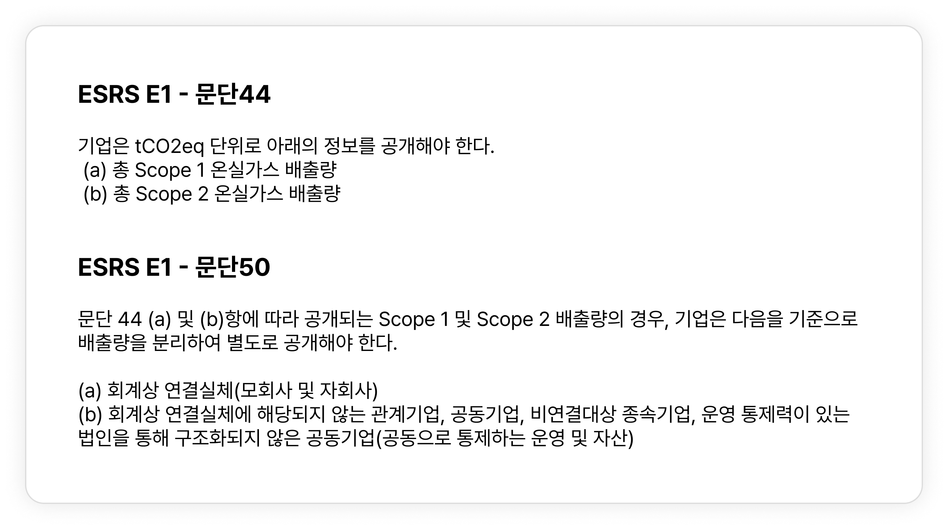 즉, IFRS S2를 준수하는 기업이 ESRS E1도 준수하여 온실가스 배출량을 보고하는 경우에는 추가적으로 자신의 운영 통제 하에 있는 모든 자산의 온실가스 배출량을 고려해야 합니다.
