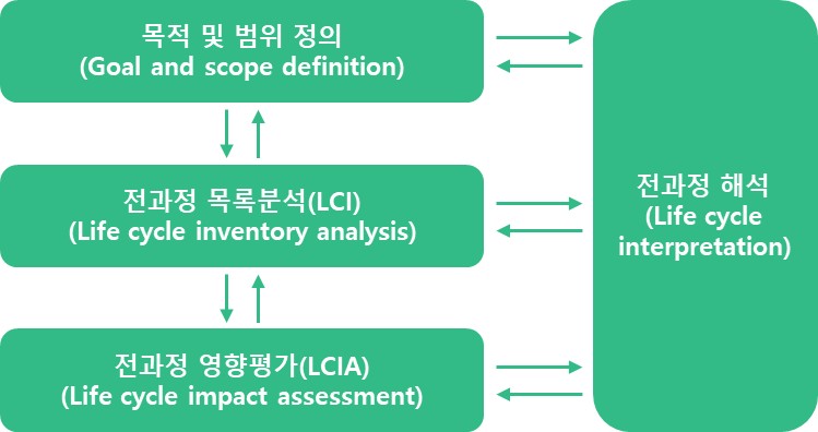 전과정평가(Life Cycle Assessment, LCA)란, 제품이나 서비스가 태어나서 사라질 때까지, 즉 “원료 채취 → 제조 → 유통/수송 → 사용 → 폐기 혹은 재활용”이라는 전생애주기(Life Cycle)를 고려해 환경에 미치는 영향을 정량화하는 방법론입니다.