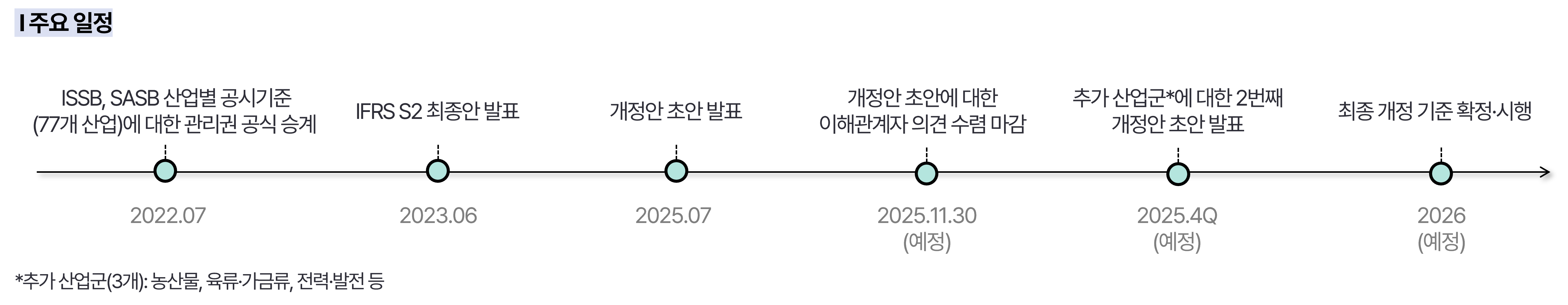 이번 개정은 단순히 개별 지표를 보완하는 수준을 넘어, 다른 공시체계와의 정합성을 확보해 파편화된 ESG 공시를 통합하려는 전략적 방향성을 분명히 보여주고 있습니다. 특히 EFRAG(유럽 재무보고 자문그룹)이 ESRS 산업별 공시 도입 시기를 2026년으로 연기함에 따라, 그 공백기 동안 SASB 기준이 사실상 국제적 준거로 자리 잡을 가능성이 커졌습니다. 이에 따라 ISSB는 모호한 용어를 국제적으로 합의된 정의로 정비해 자의적 해석을 최소화하고, 검증 가능한 공시체계로의 전환을 촉진함으로써 SASB 기준의 신뢰도를 높이고 있습니다.