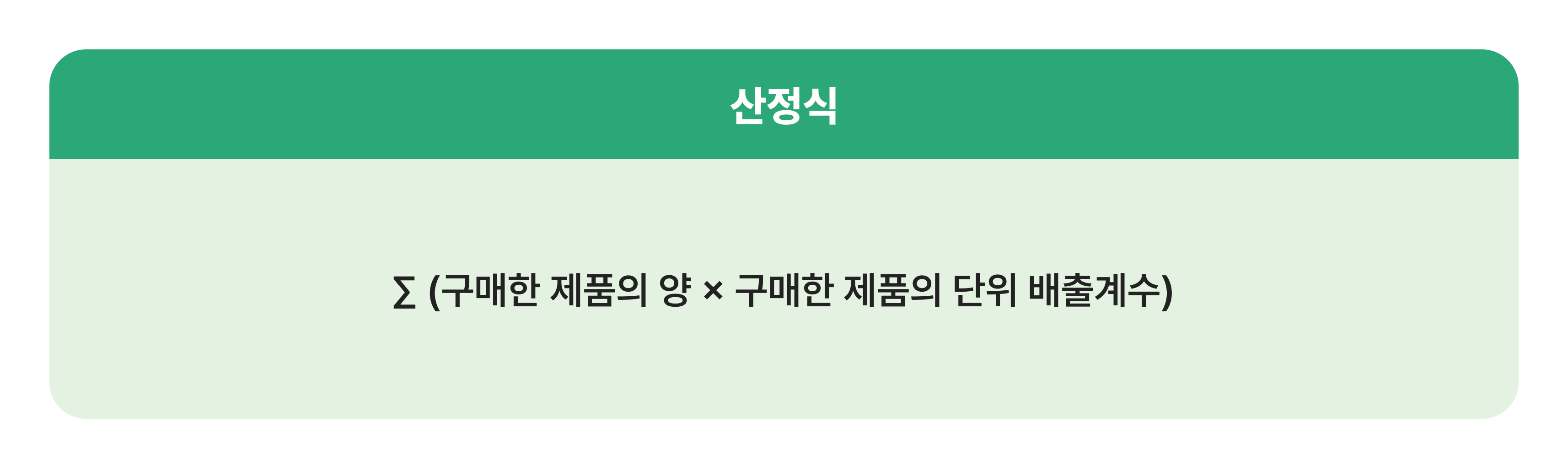 산정식은 무척 간단한데요. 실제로 이 식을 적용하는 것은 쉬운 일이 아닙니다. 기업이 구매한 제품의 ‘배출계수’를 공급사로부터 직접 전달받을 수 있을 경우에만 사용할 수 있기 때문입니다. 다시 말해 공급사가 해당 제품에 대해 제품 전 과정의 탄소발자국(Product Carbon Footprint)을 산정한 경우에 활용할 수 있는 방법인 것이지요.