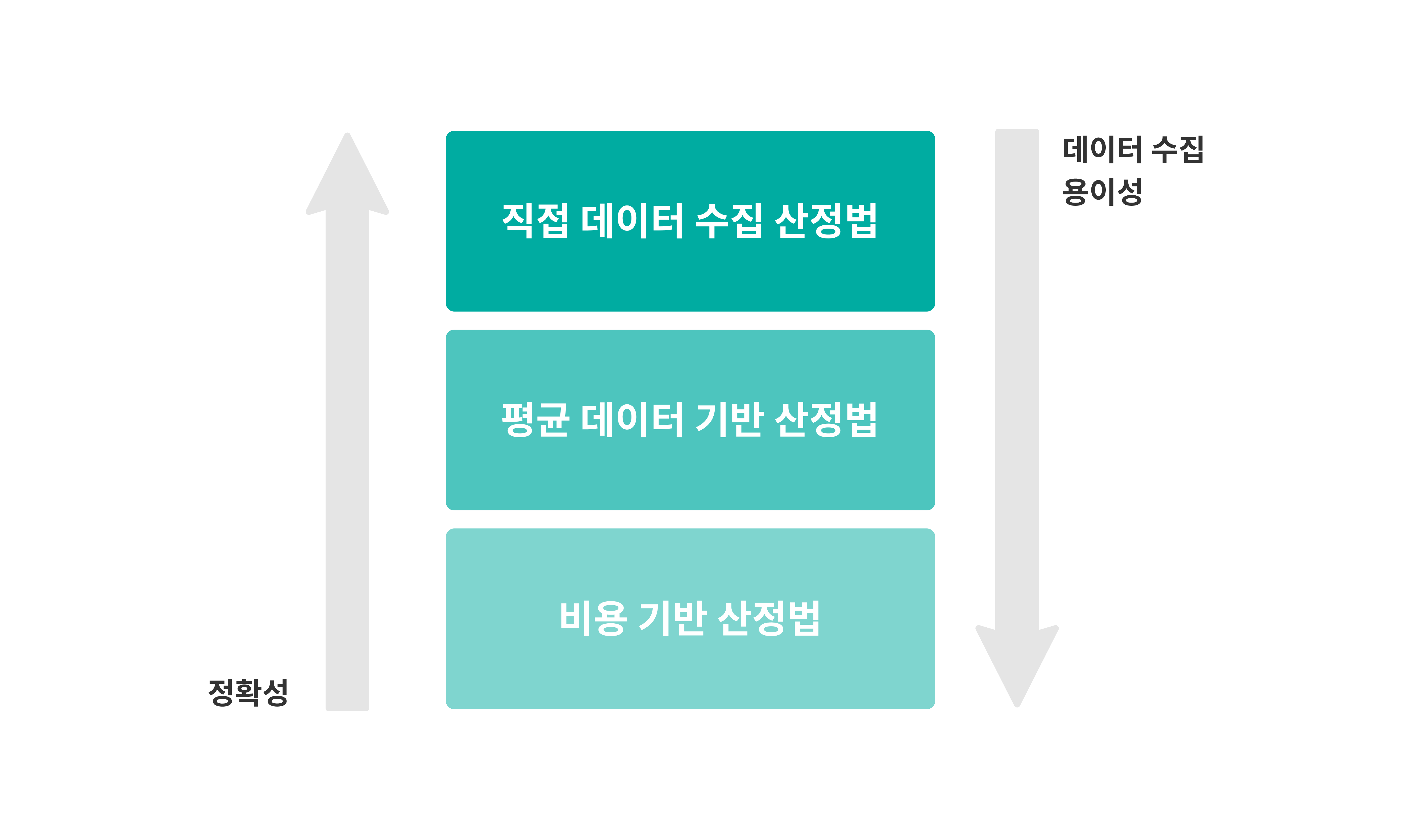 GHG 프로토콜은 당장은 데이터 확보가 어려워 정확도가 낮은 산정방법을 택하더라도, 시간을 들여서 점차 더 높은 정확도의 산정방법으로 고도화해갈 것을 권고하고 있습니다.
