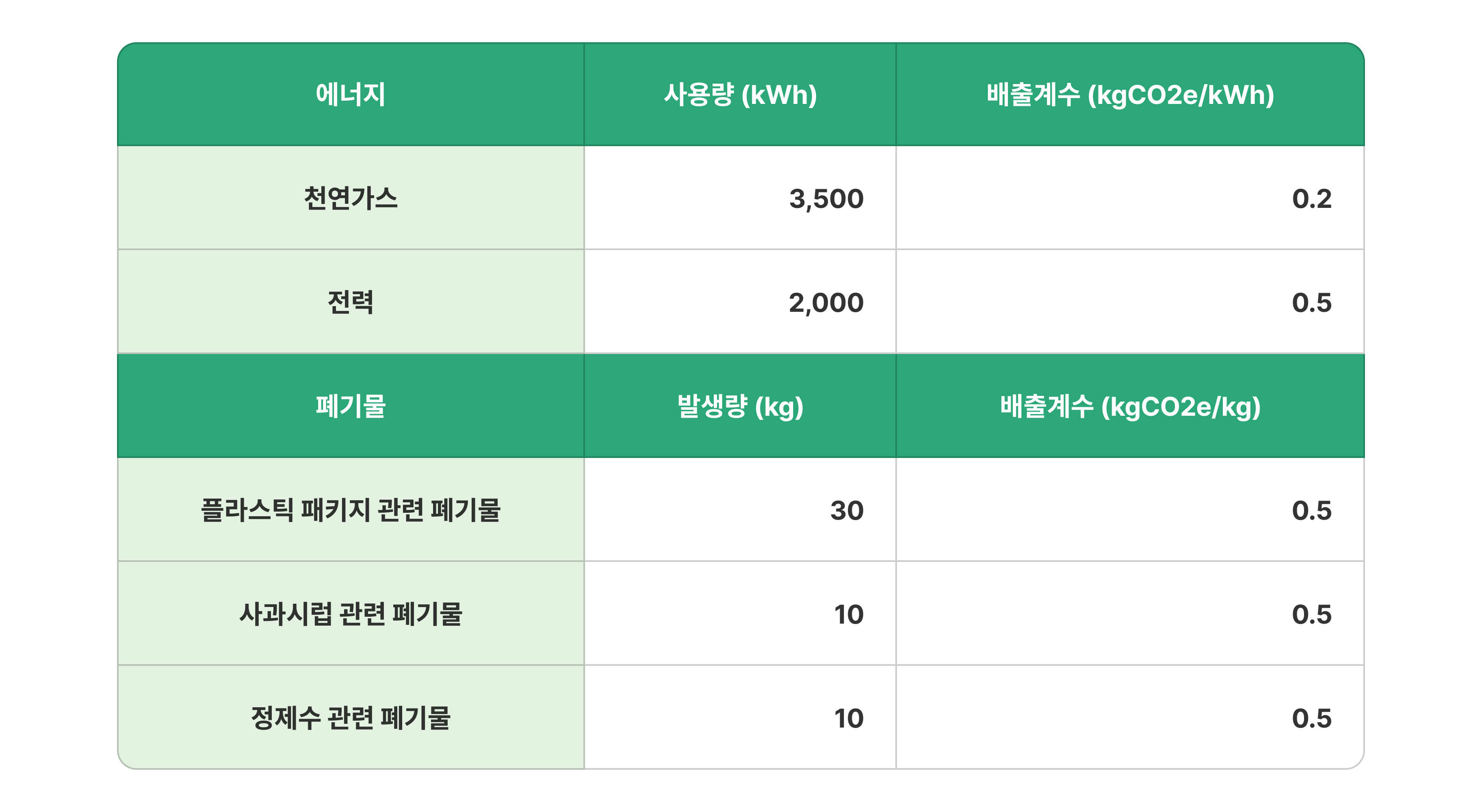기업B는 사과주스를 만드는 과정에서 보고기간 동안 에너지를 다음과 같이 사용했고, 가공 과정 중 폐기물도 발생했습니다.