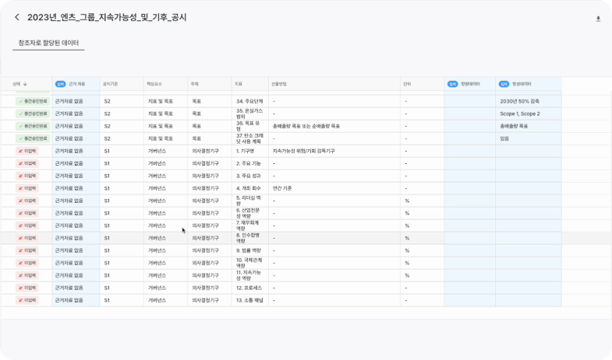 엔스코프 플랫폼을 활용하면 보다 정확하고 효율적으로 KSSB에서 요구하는 공시사항들에 대응할 수 있습니다. 엔스코프가 핵심적으로 도움을 드릴 수 있는 부분은 아래와 같습니다.